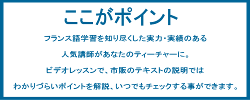 入門レベルの簡単な文法から、仏検、DELF・DELF対策、通訳案内士試験対策まで、解説編、問題編から必要に応じて受講コースを選べます。 コツコツ学習する人も、短期集中型の人も、目標に応じて、大きくライフスタイルを変えずに時間を有効活用しながら自分のペースでフランス語・フランス語会話学習を実現できます。